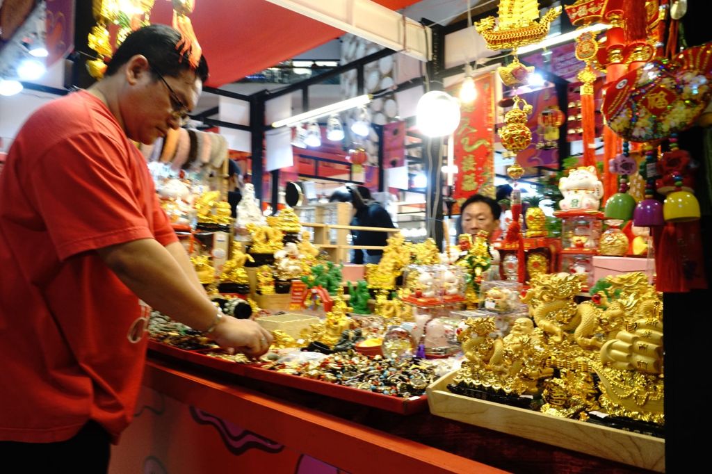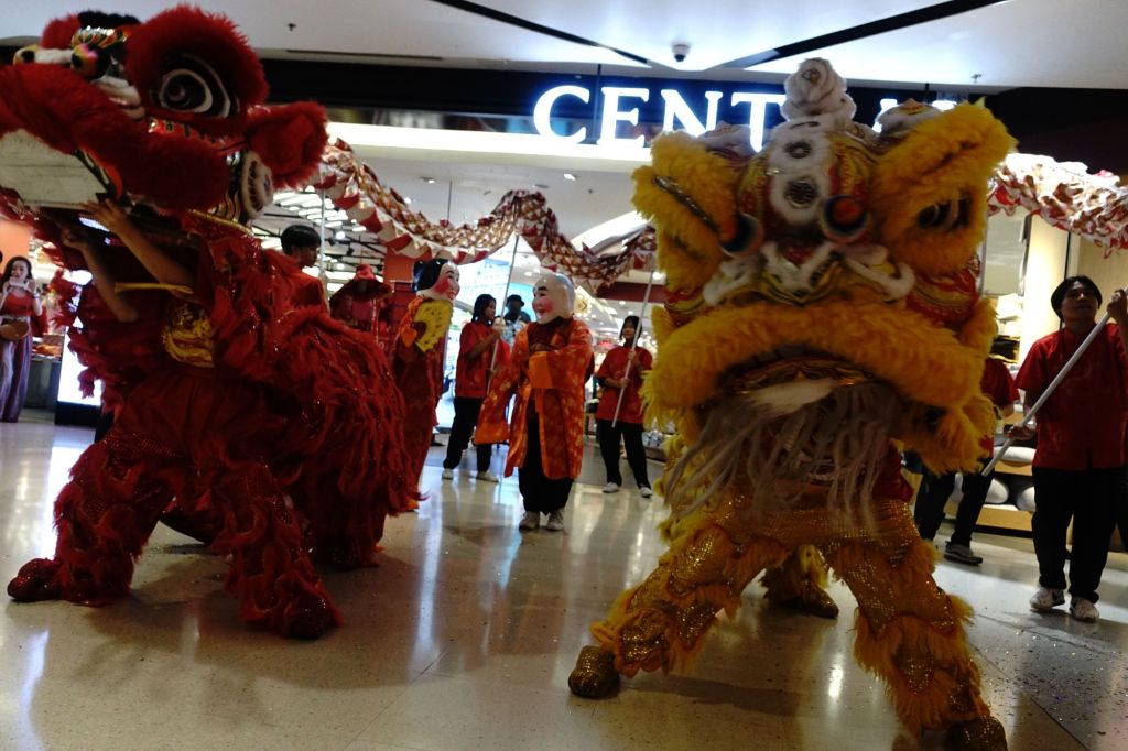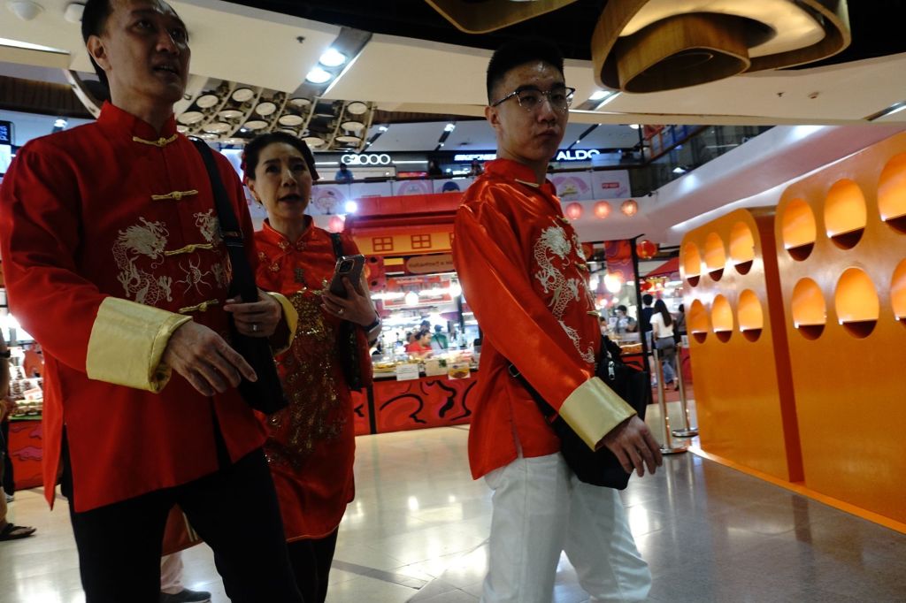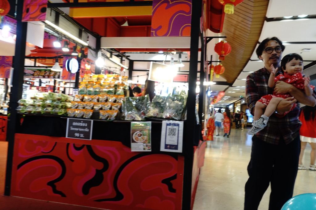 People celebrate in Chinatown and many other areas. Malls are popular locations, like this one at Central Ladprao in Bangkok. There are lion dances, temporary shrines, lots of food, and people dressed up in red shirts and dresses. Happy Year of the Dragon!