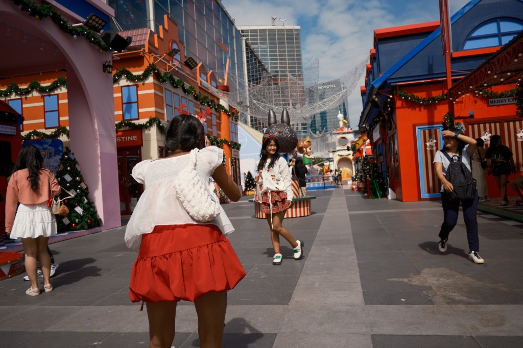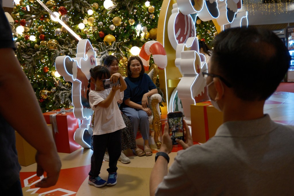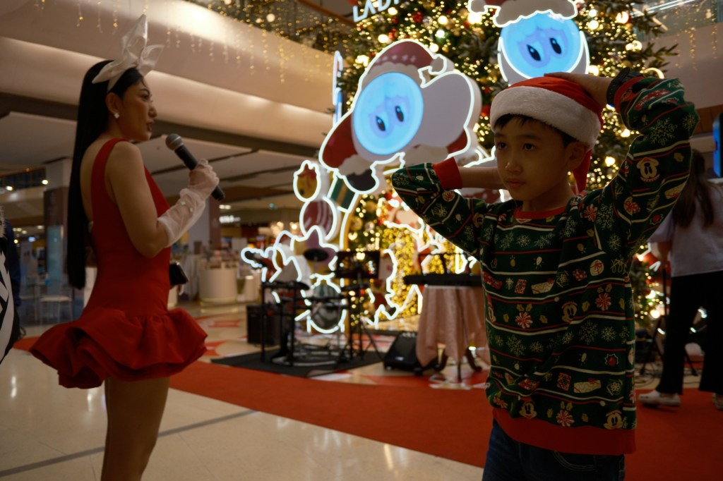 Especially evident at large international shopping malls, elaborate Christmas decorations go up in December, everything from Christmas trees with gift-wrapped (fake) presents, inflatable Santas, giant candy canes, Christmas markets, Christmas-themed foods, Christmas music piped through the loudspeakers everywhere, Christmas carolers caroling, toy displays, and more! People join in on the festivities by wearing their Christmas attire: red and green dresses, ugly sweaters, and the ever-popular headwear of Santa hats, reindeer antlers, mini-Christmas trees, bowties, or whatever Christmas-y decoration you want put on your head!