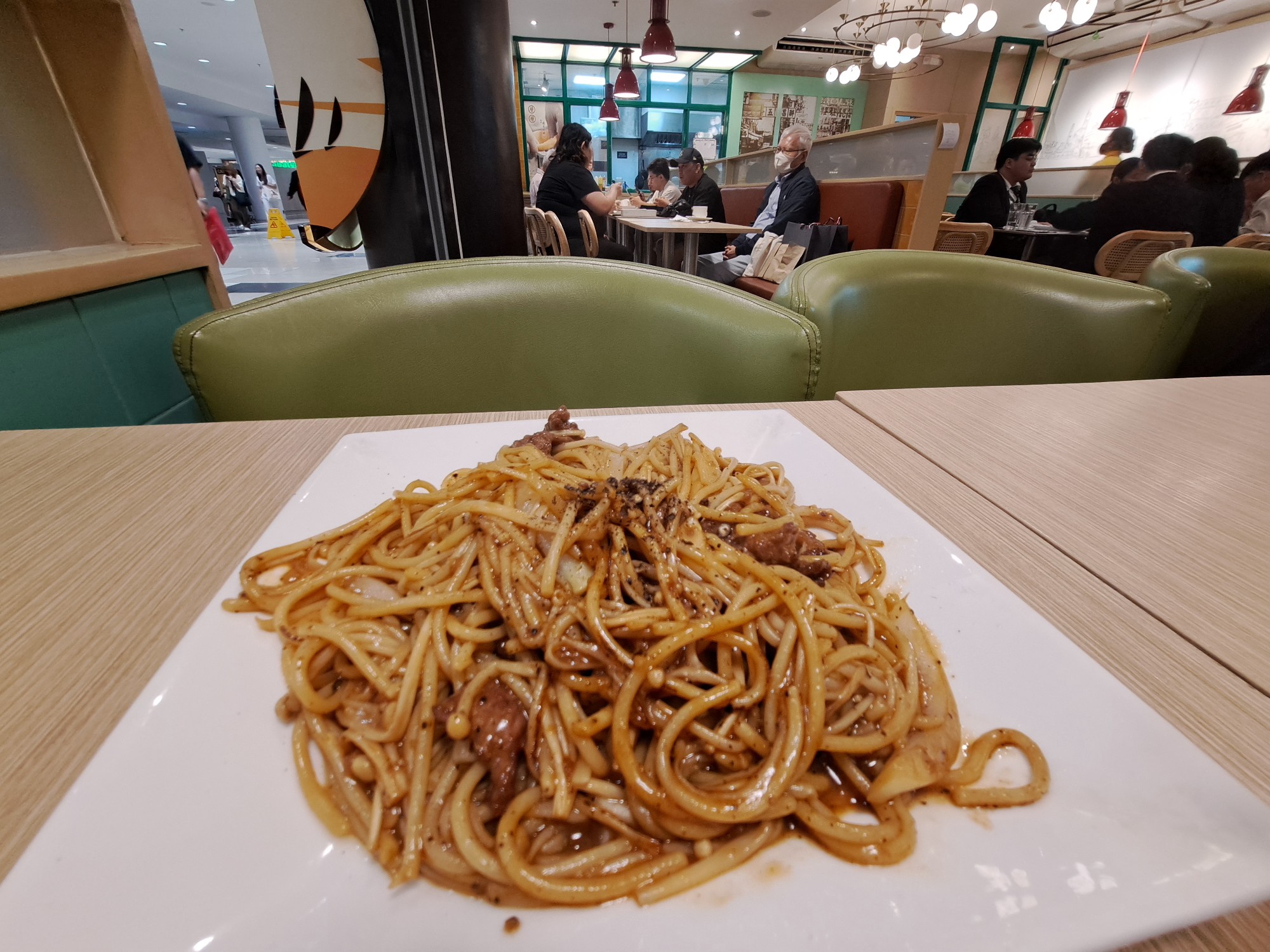 Then it was stir fried spaghetti with beef and enoki mushroom in black pepper sauce.