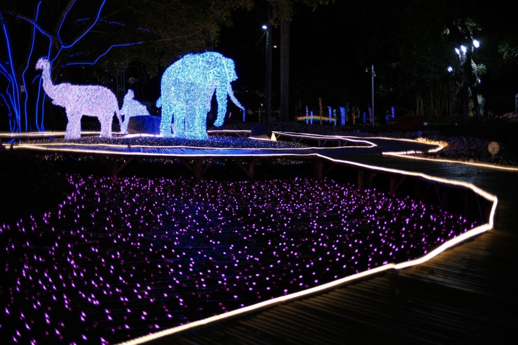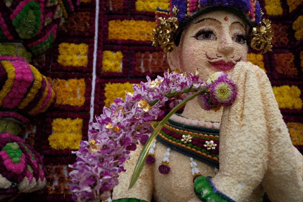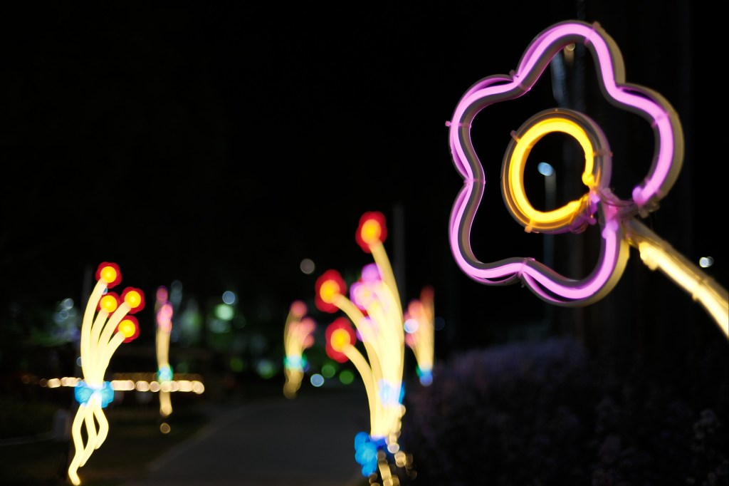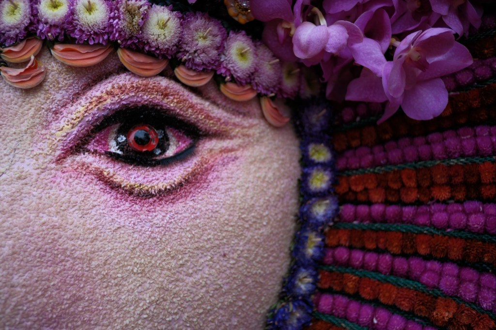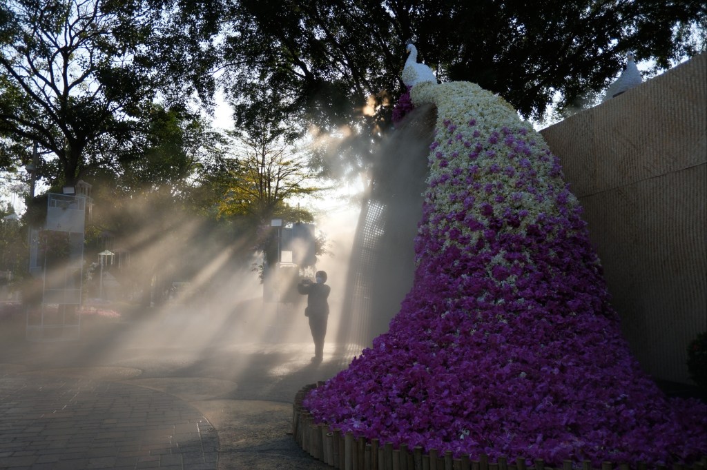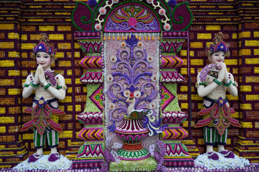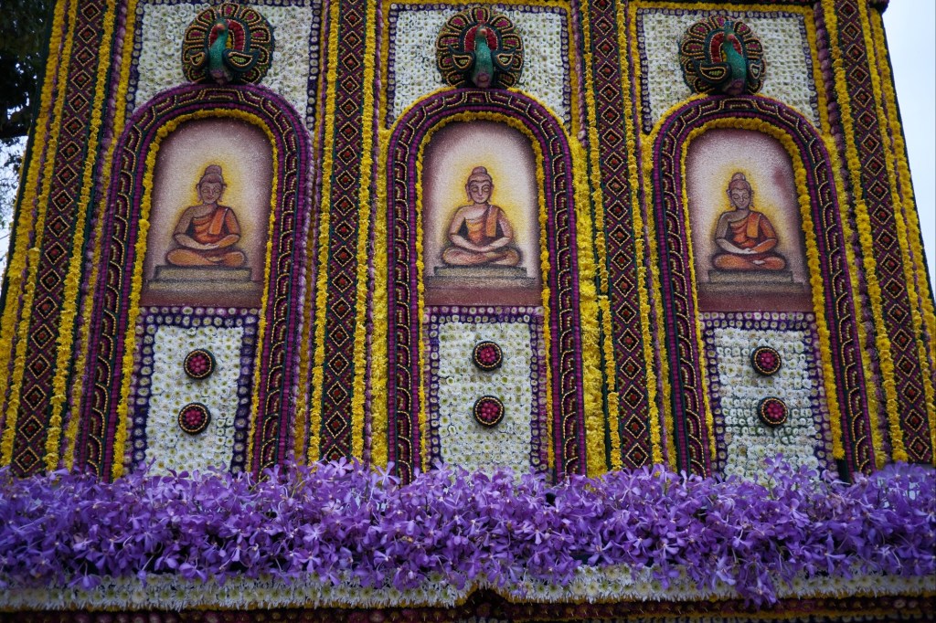 The small park was converted into a huge flower exhibit. There was a parade of floral floats winding its way through the city streets and ending in front of the park, where they were left on display so they could be admired up close. And at night, the park glowed with colorful lights.