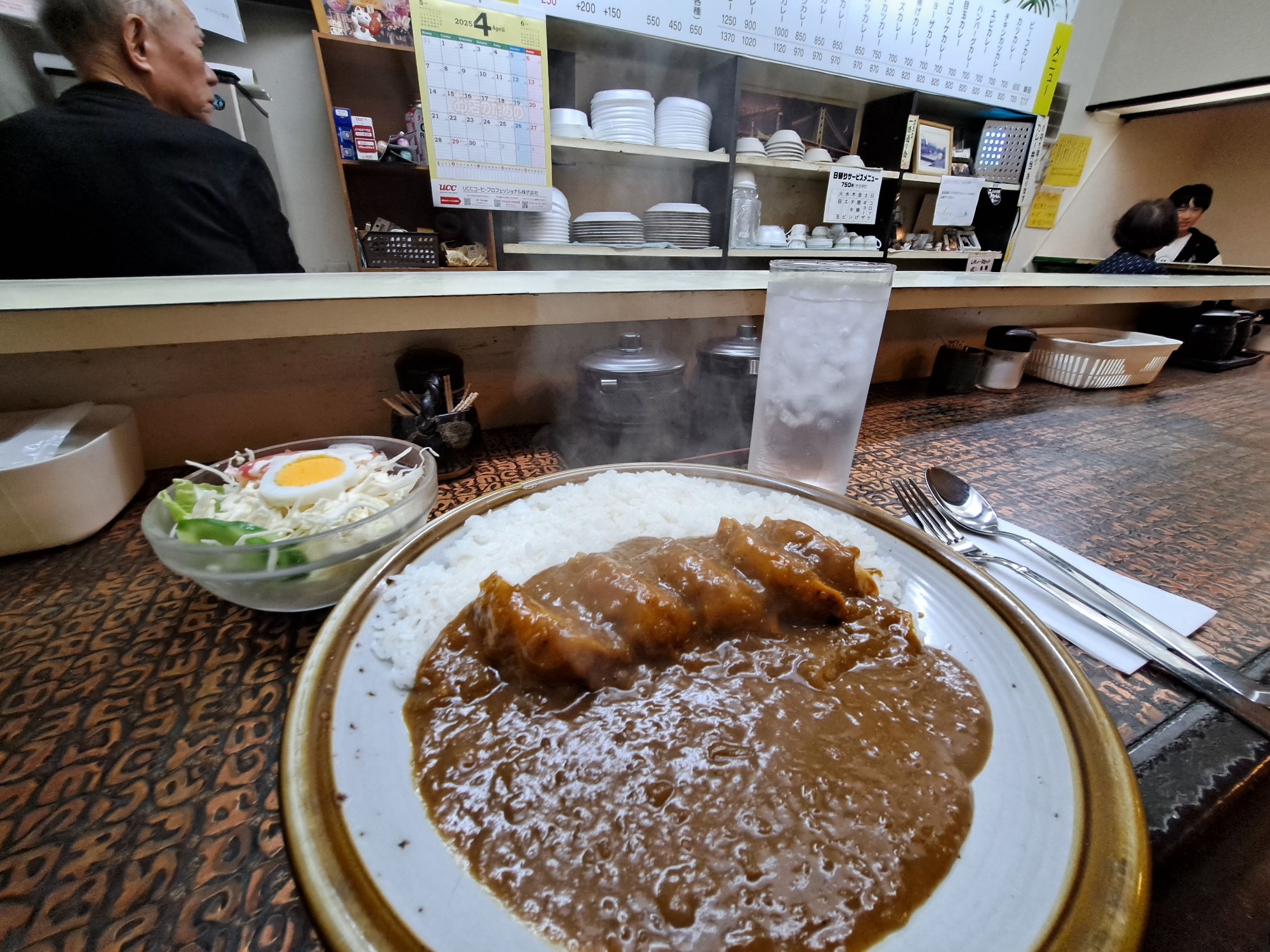 Haven’t seen this combination before, pan-fried gyoza on a bed of rice with the curry poured over it. Bonus, the set meal which includes salad is the Saturday special!