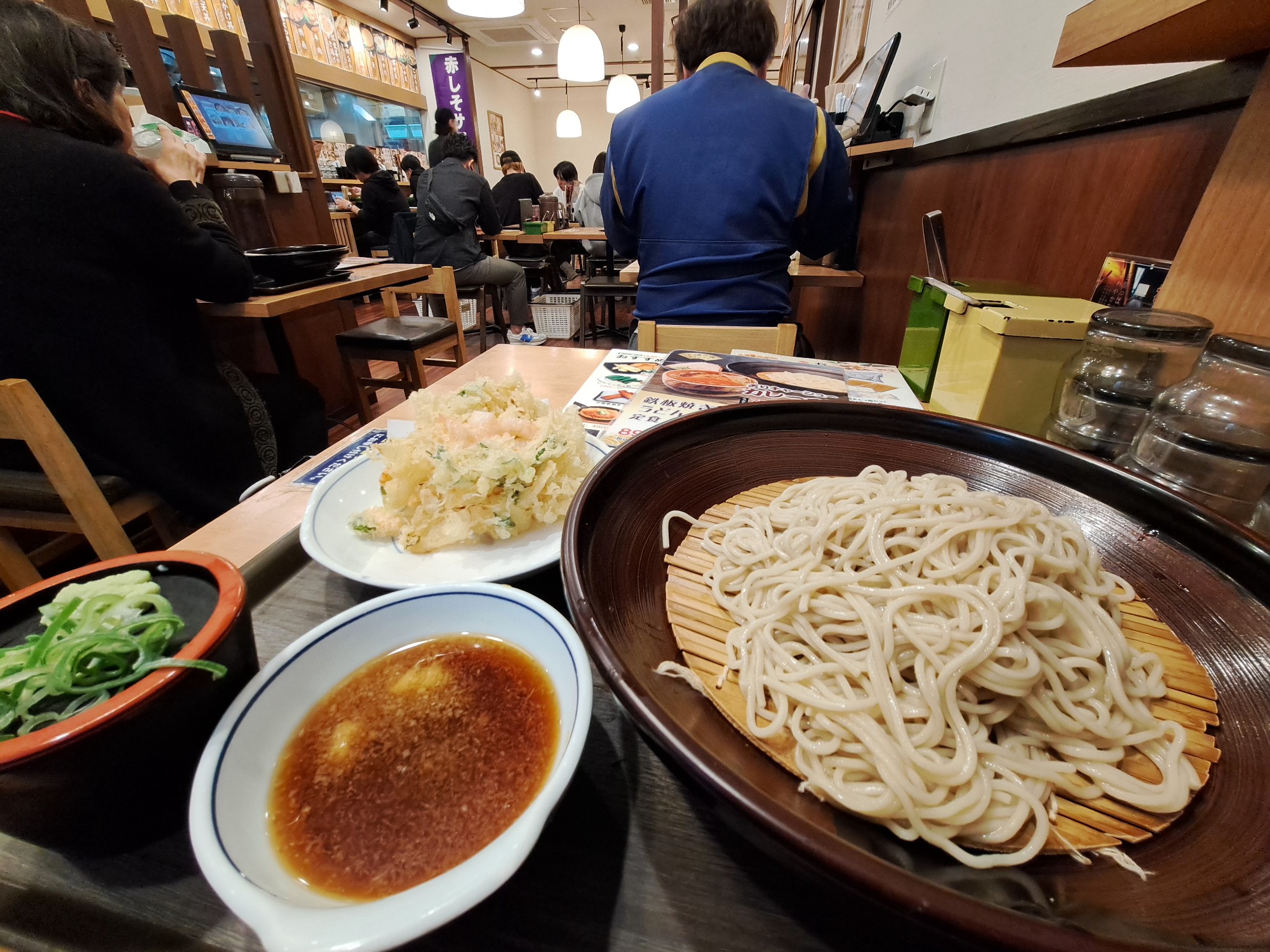 Kakiage mori soba at a popular Kyūshū soba-and-udon chain restaurant in Kumamoto, Japan. …