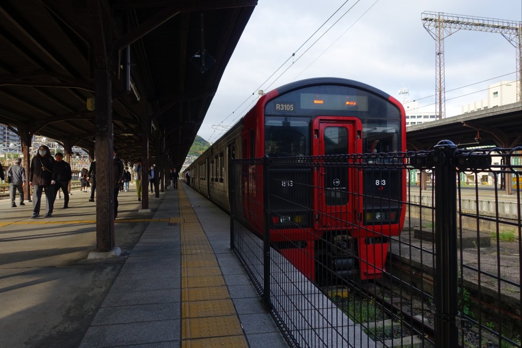 Gallery: Kokura Station; Train at Kokura Station; Cloudy skies; Arriving at Mojikō Station; Train at Mojikō Station; Mojikō Station.