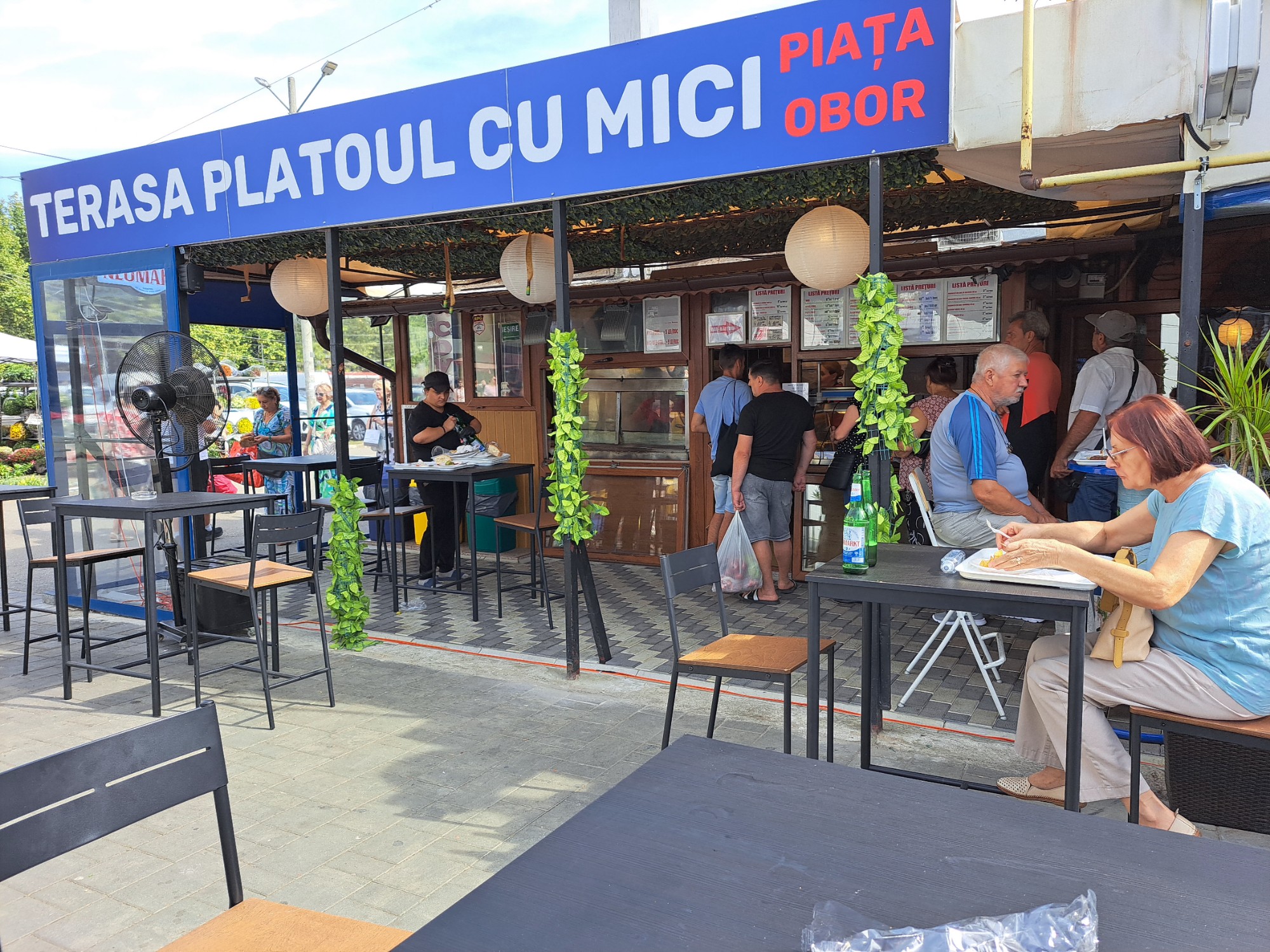 Mici at one of several restaurants offering it at the huge Obor Market in Bucharest, Romania. …