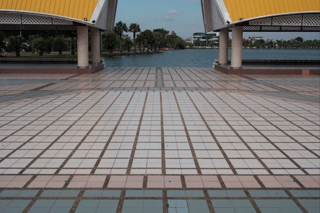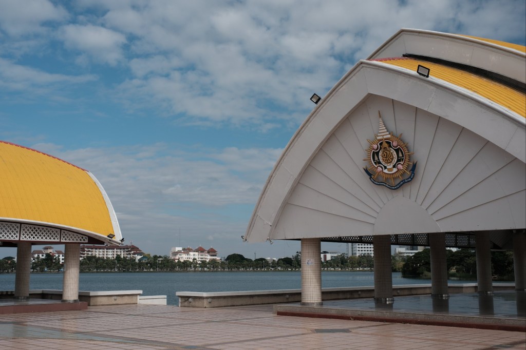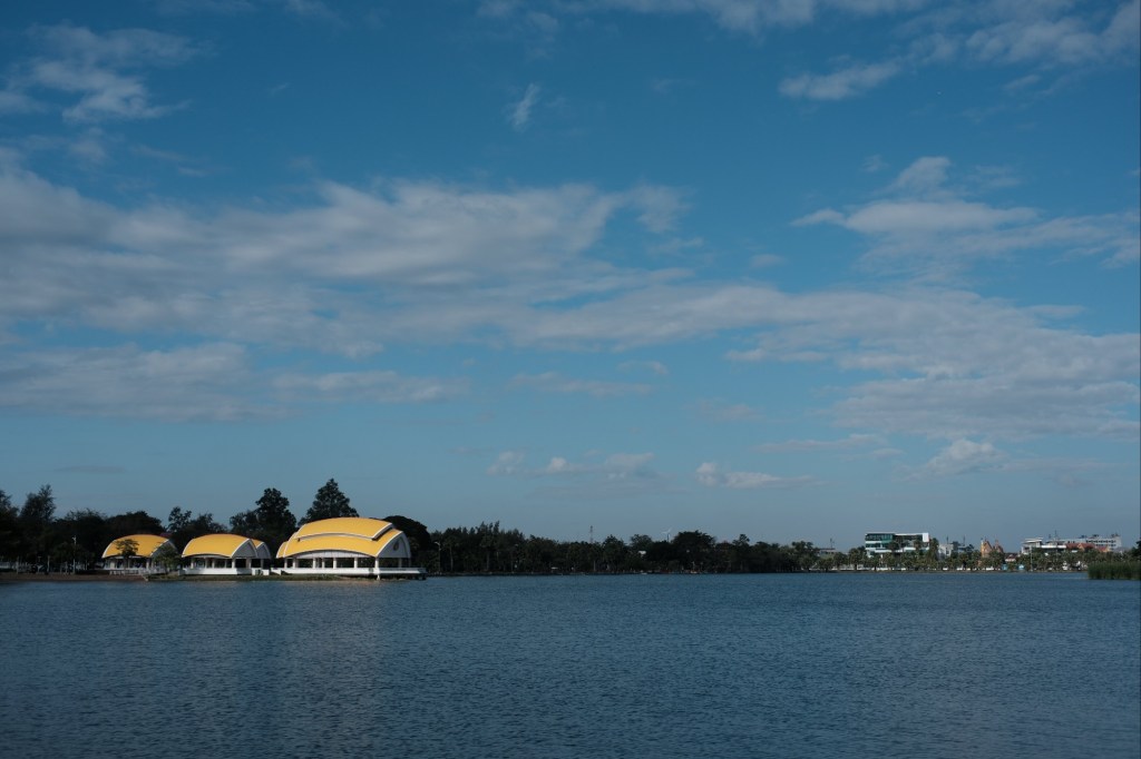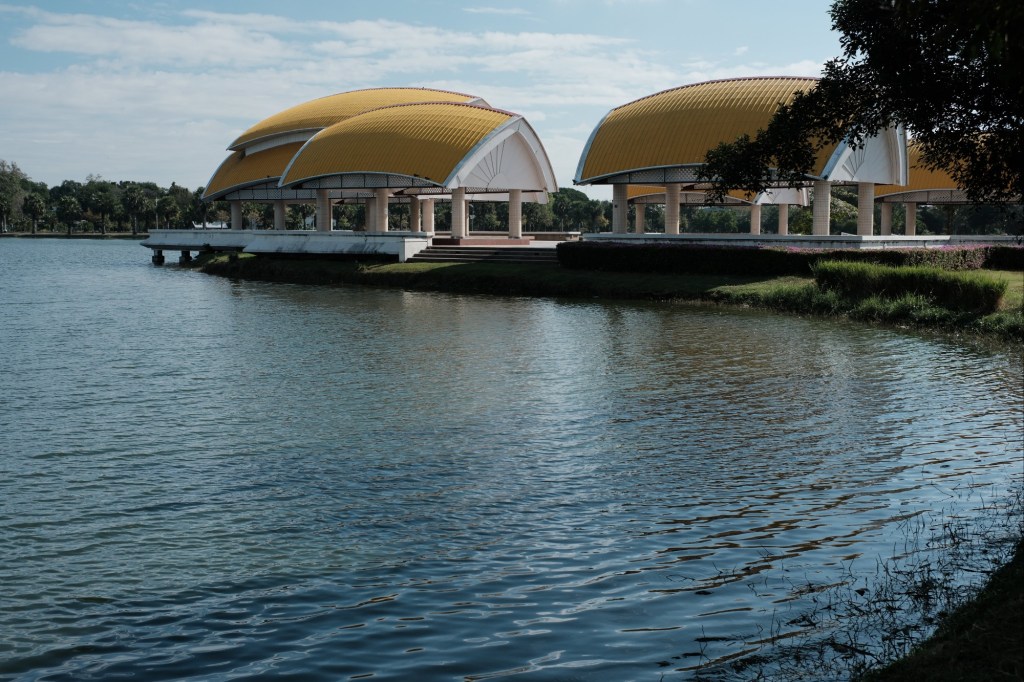 Salas are Thai-style open-air pavilions, made up of columns and a roof. No walls allow fresh air to flow through the space while the roof provides shade. The park surrounds a large lake, where the yellow roofs can be spotted from many of its shores.