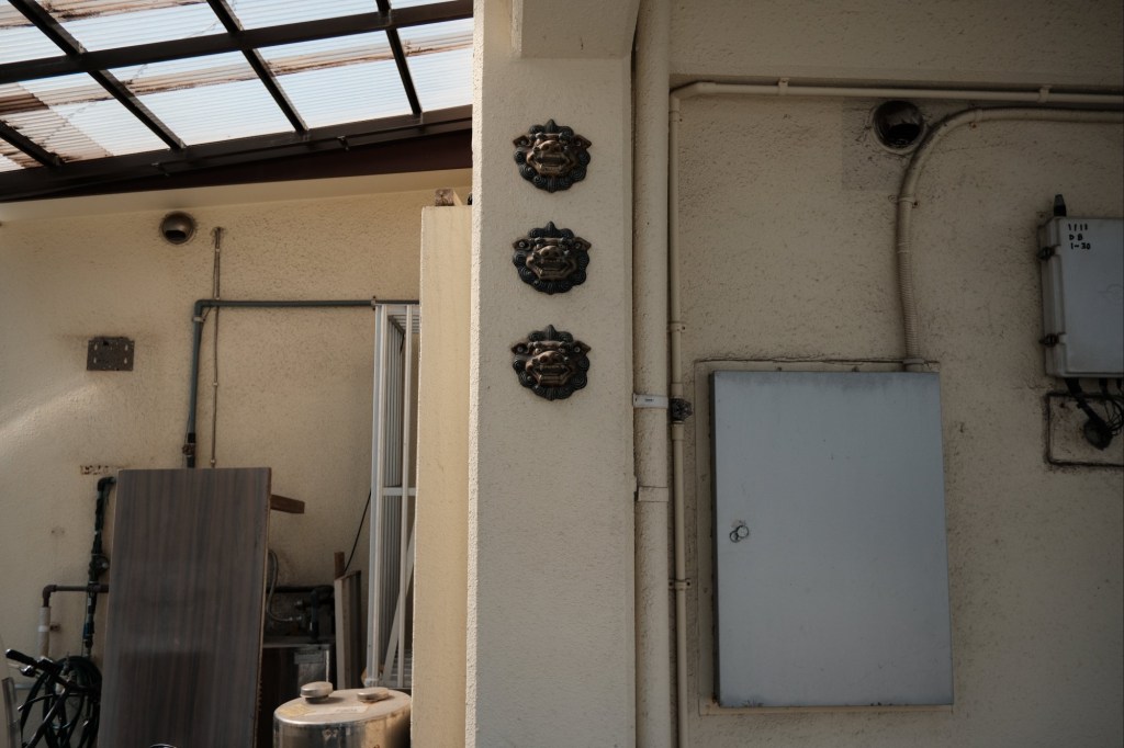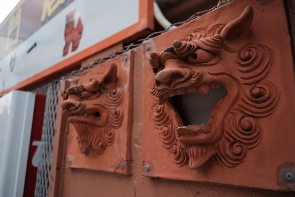 Statues stand guard in front of homes and businesses, often in pairs with one being male (mouth opened) and the other female (mouth closed). Painted shisa graphics are used to decorate all sorts of things.